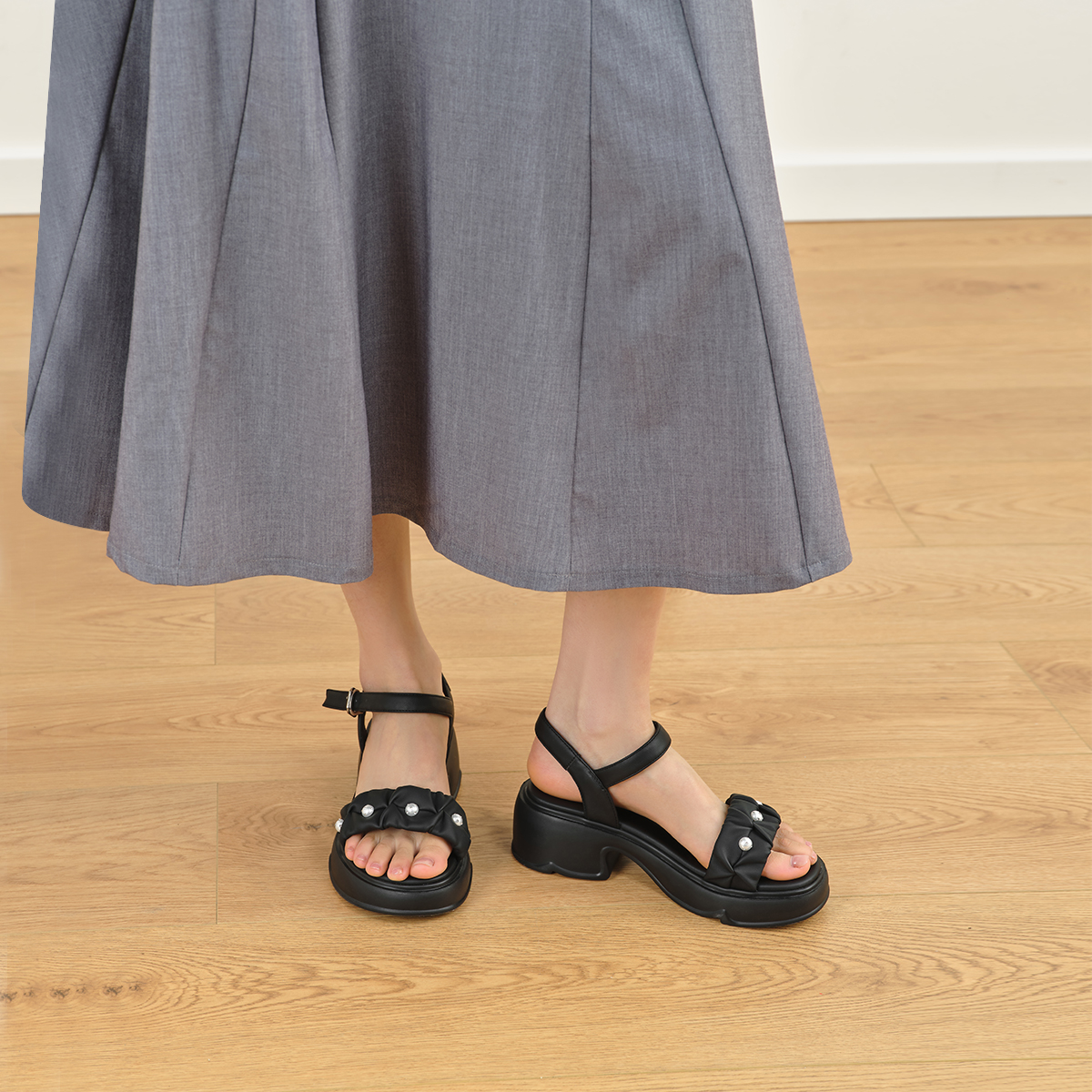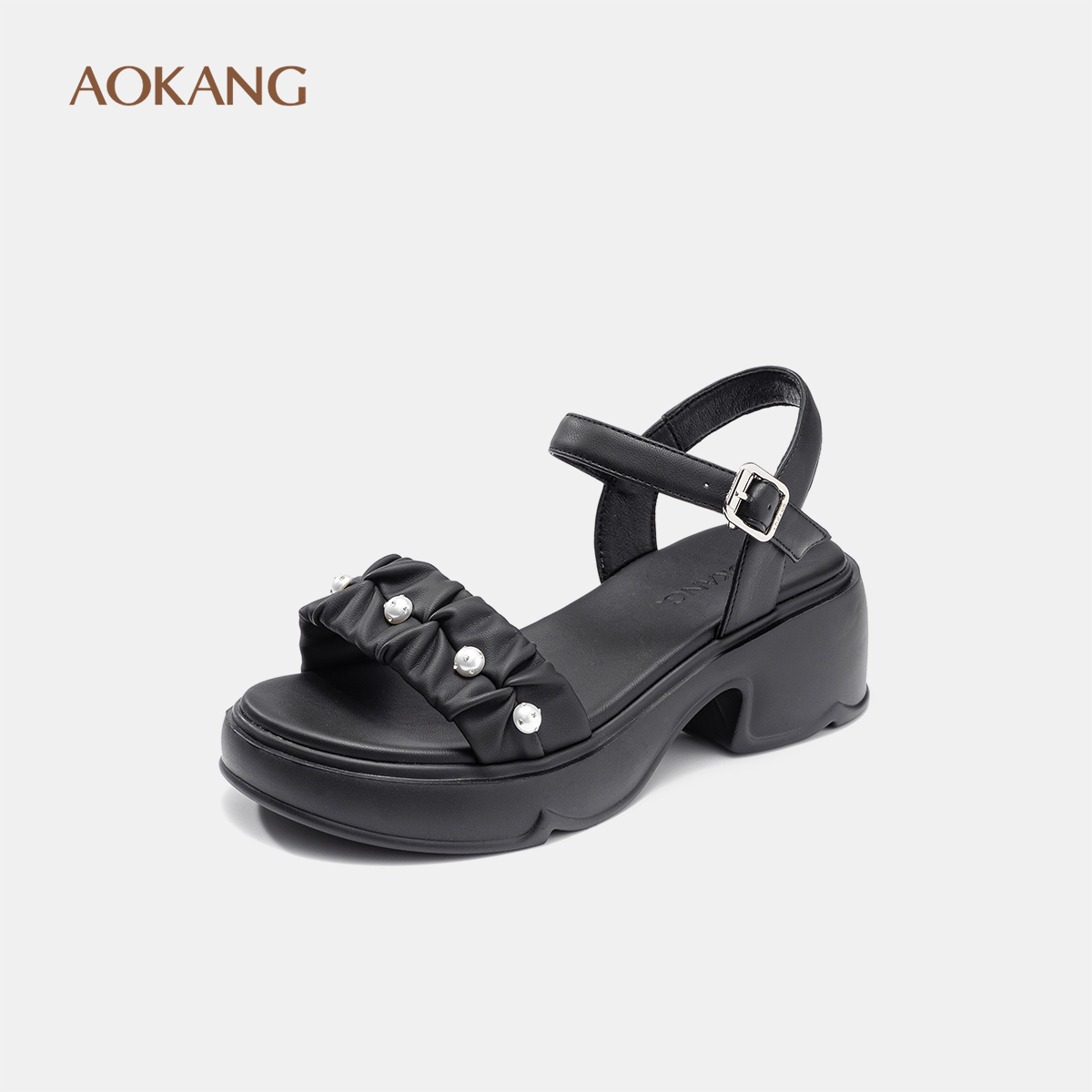 凉鞋 奥康 时装 2025夏季 一字带气质珍珠舒适粗跟增高通勤凉拖 女鞋
