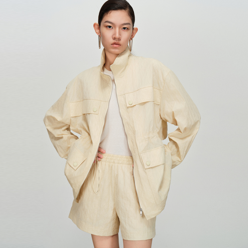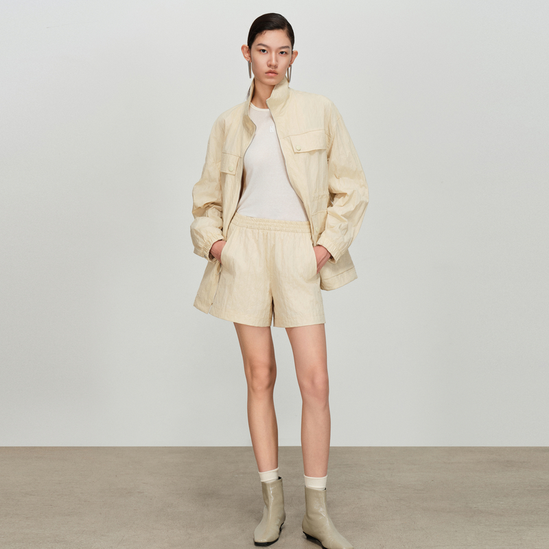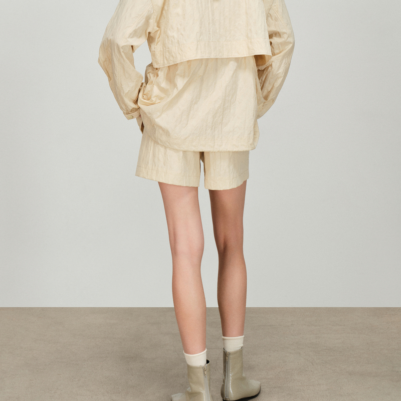 风短裤 TI尤缇2025春季 百搭垂感褶皱工装 女 浅黄色休闲裤 专柜新款