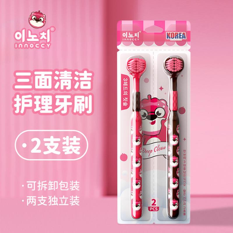 三面牙刷软毛成人牙刷三面包裹女生女孩可刮舌苔家庭装 情侣草莓熊