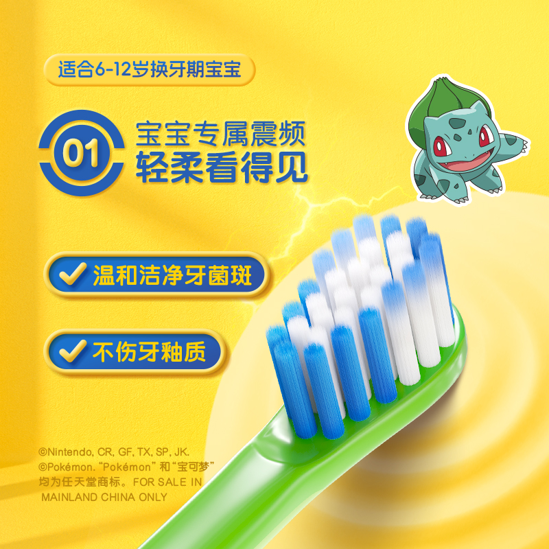 高露洁儿童电动牙刷6到12岁超细柔软刷毛小巧刷头防滑宝可梦联名