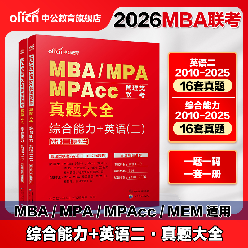 2026年mba管理类联考25考研管综199综合能力英语二历年真题题库教材mpa公共管理硕士mem工程会计专硕考试24研究生在职二维码 工商