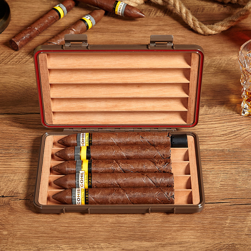 户外旅行保湿 盒密封五支装 箱 超薄PVC雪松木保湿 雪茄盒便携式