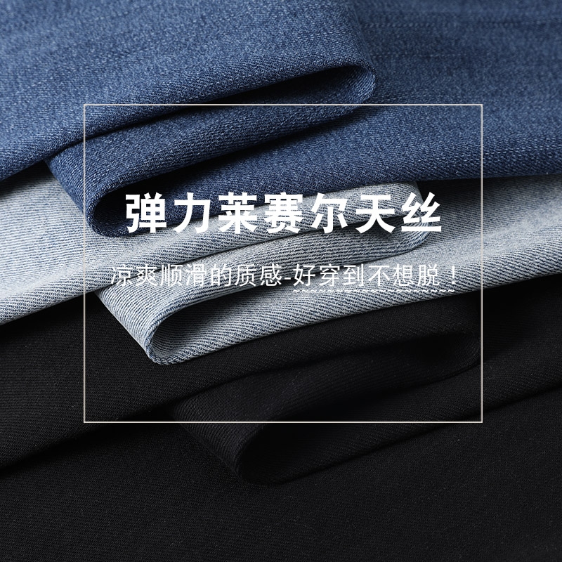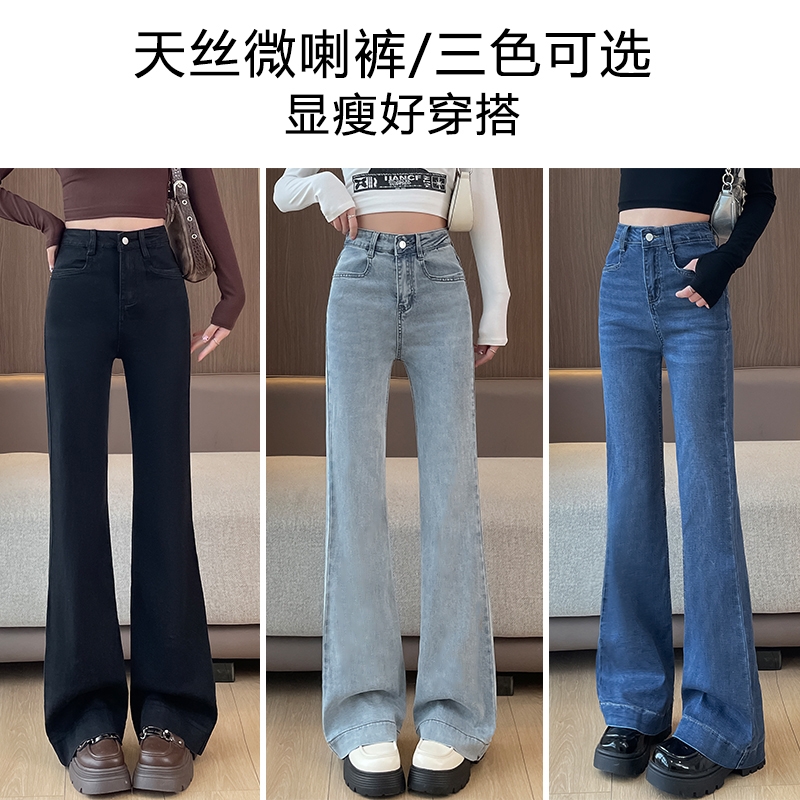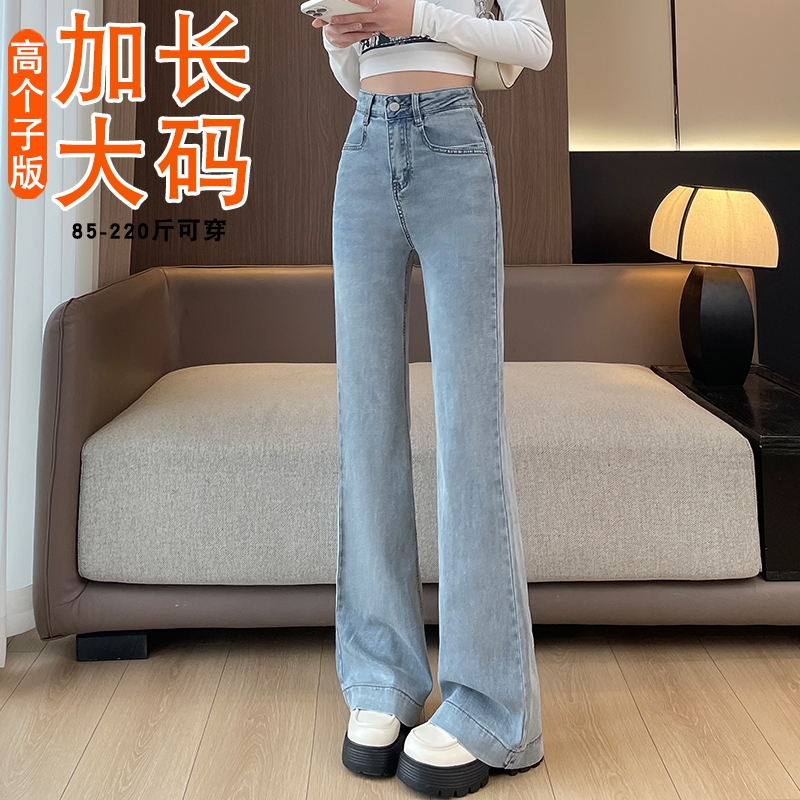 显瘦喇叭裤 薄款 高腰弹力天丝修身 女高个子胖mm大码 加长微喇牛仔裤