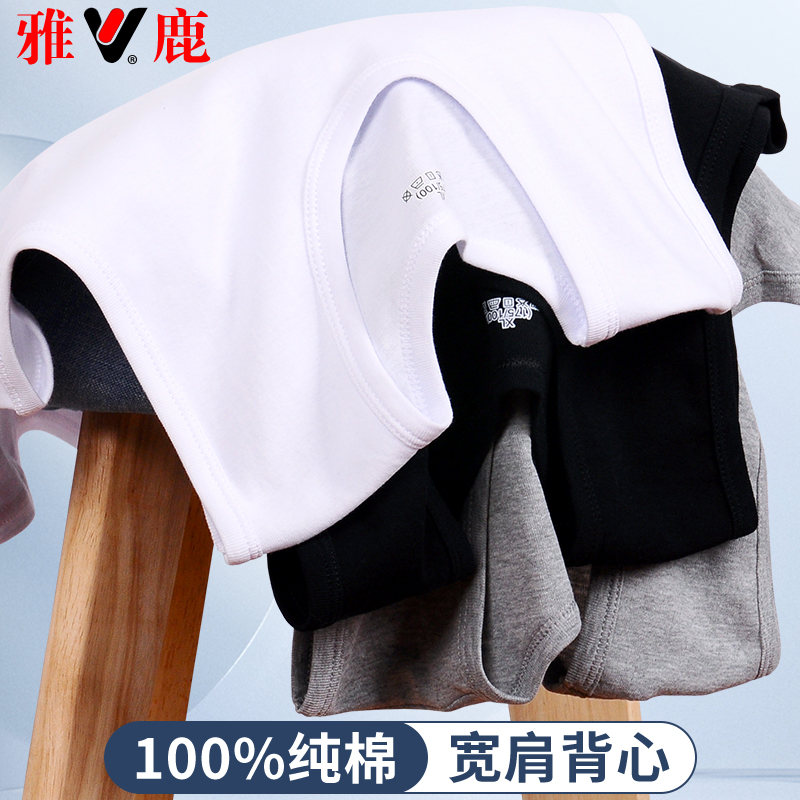 T恤白色修身 宽肩无袖 运动健身 背心纯棉打底内穿汗衫 雅鹿全棉男士