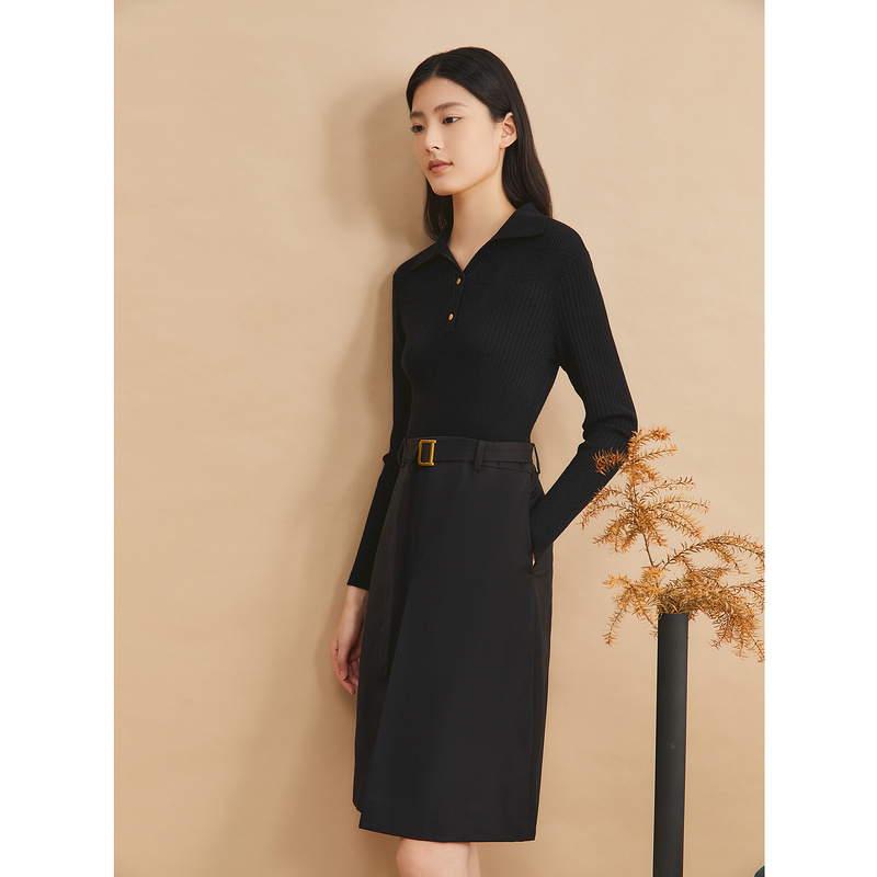 法式 新款 假两件开衩针织连衣裙 2024冬季 YINER音儿专选女装
