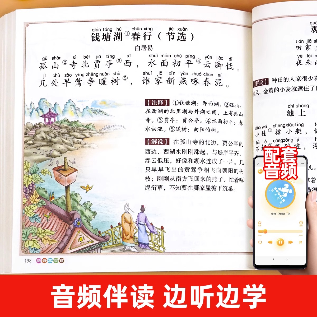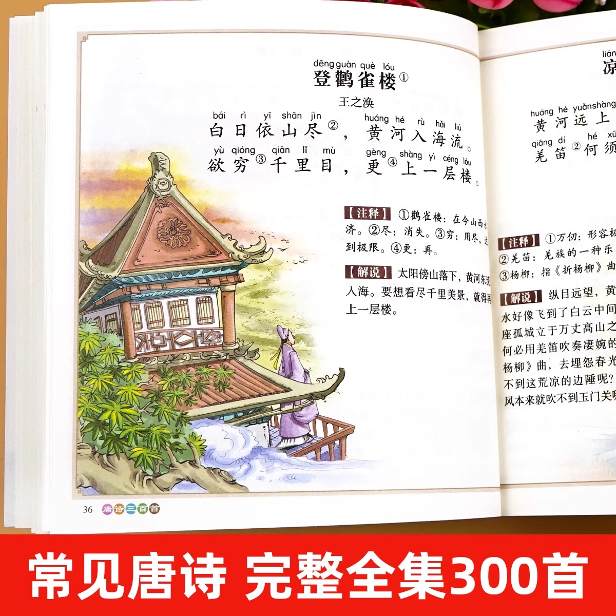 6岁益智启蒙书籍有声播放书古诗三百首绘本 儿童唐诗宋词幼儿园必背绘本3 唐诗三百首幼儿早教正版 全集古诗书300首彩图注音版