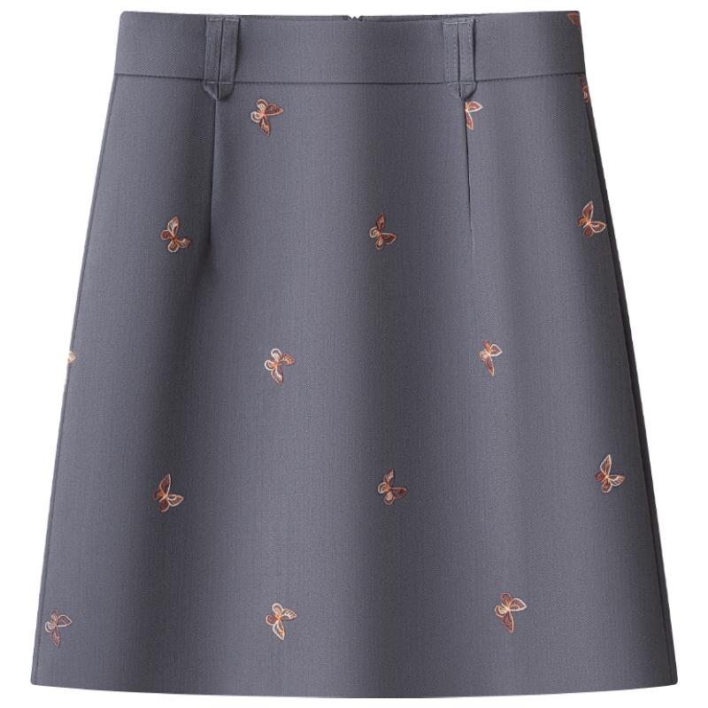 短裙 蝴蝶刺绣A字裙百搭西装 灰色气质优雅半身裙女2025年夏季 新款