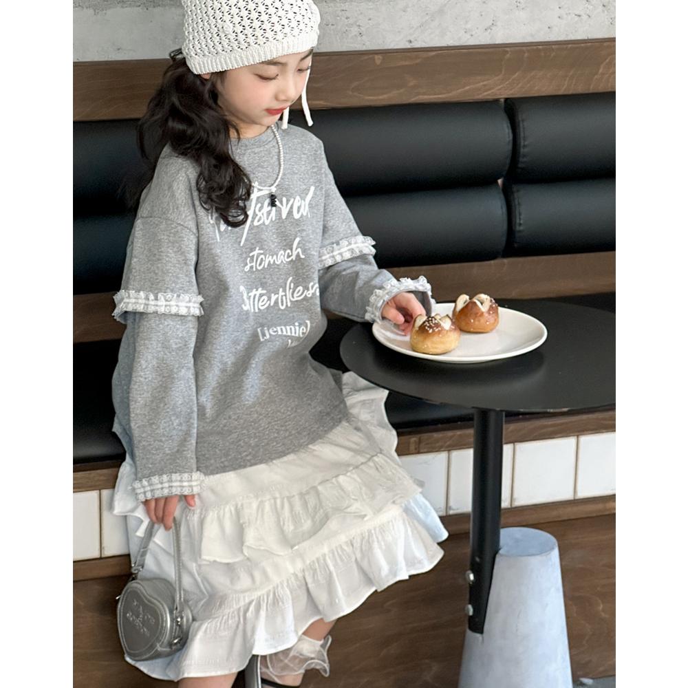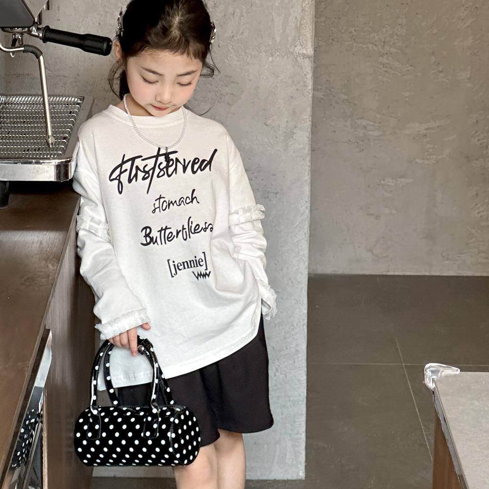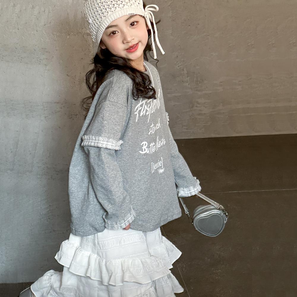 2025新款 洋气蕾丝花边拼接长袖 韩版 秋装 上衣 儿童装 女童卫衣春秋款