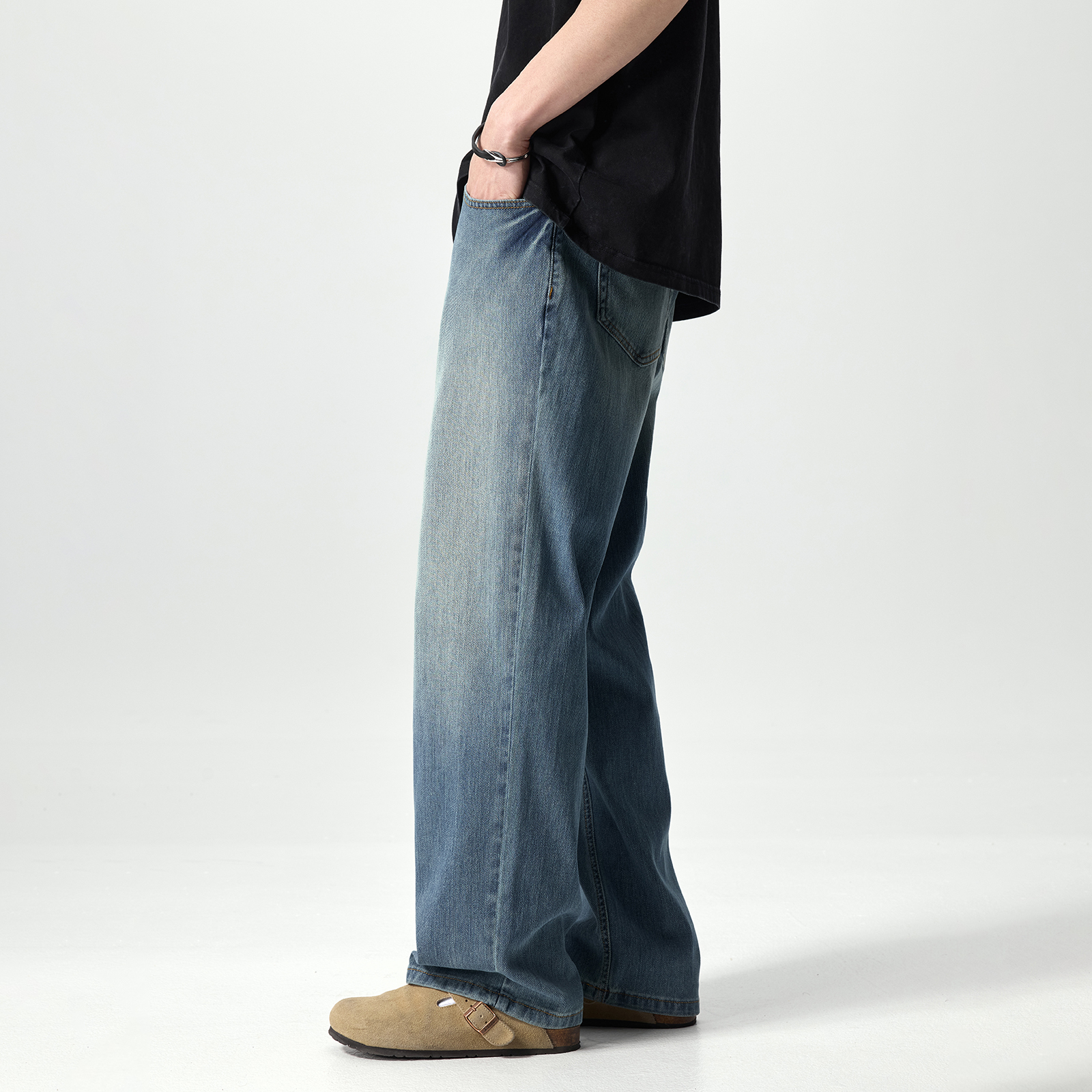 软牛仔 宽松复古水洗休闲长裤 天丝莱赛尔牛仔裤 男春秋弯刀阔腿男裤