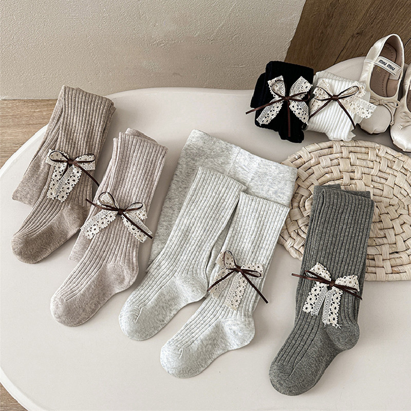 袜女孩蕾丝蝴蝶结袜裤 宝宝连裤 婴儿童外穿 春秋薄款 女童纯棉打底裤