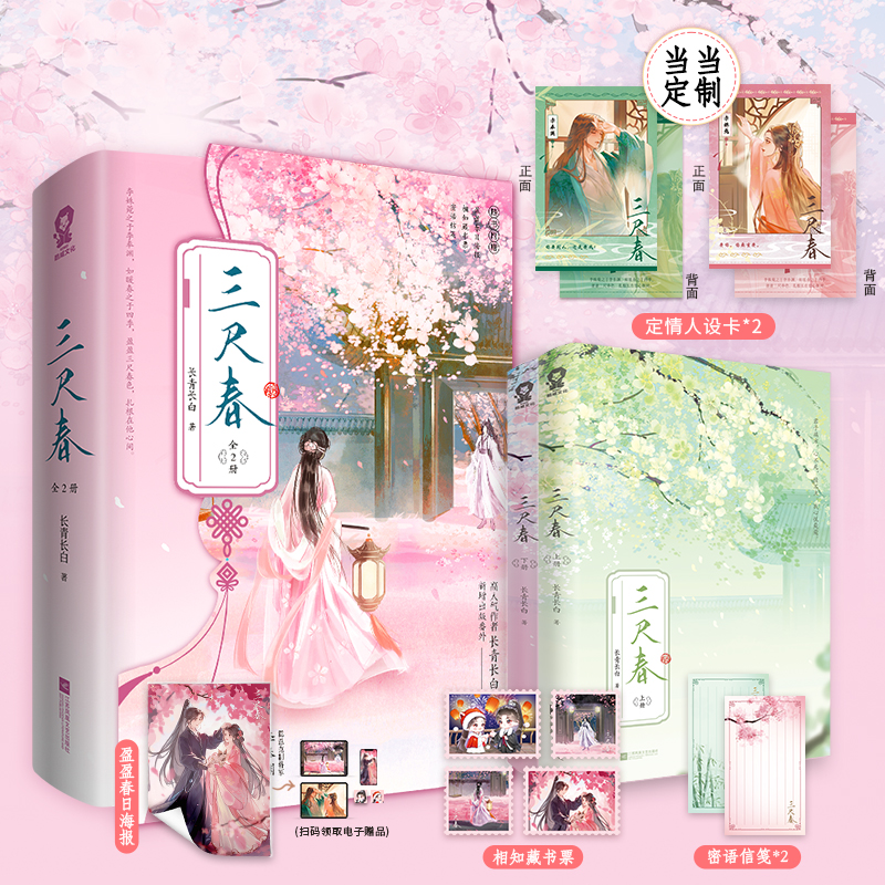 藏书票 信笺 三尺春全2册 当当印特签版 古代青春文学言情小说正版 海报 高人气作者长青长白古风深情之作 畅销书籍 赠定情人设卡