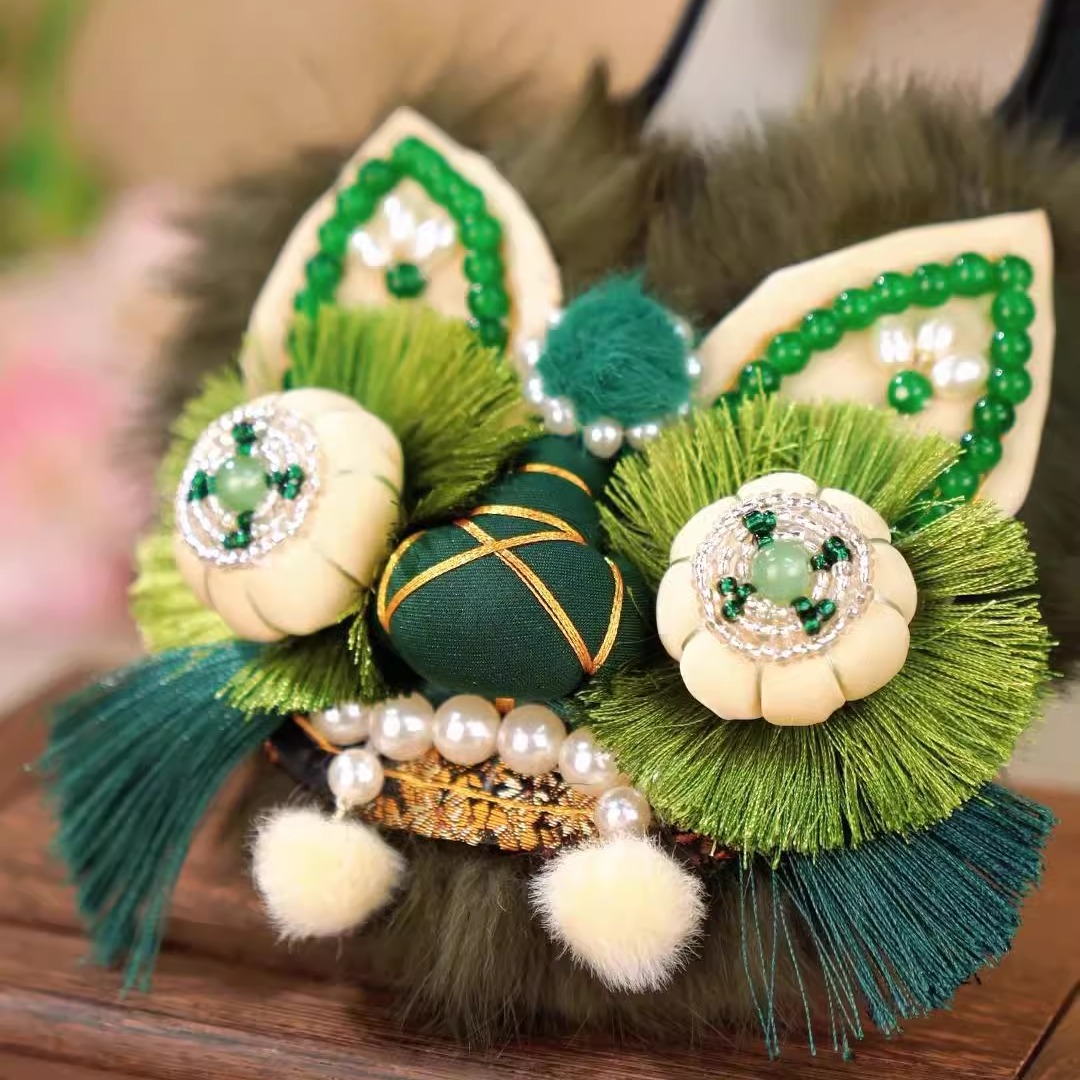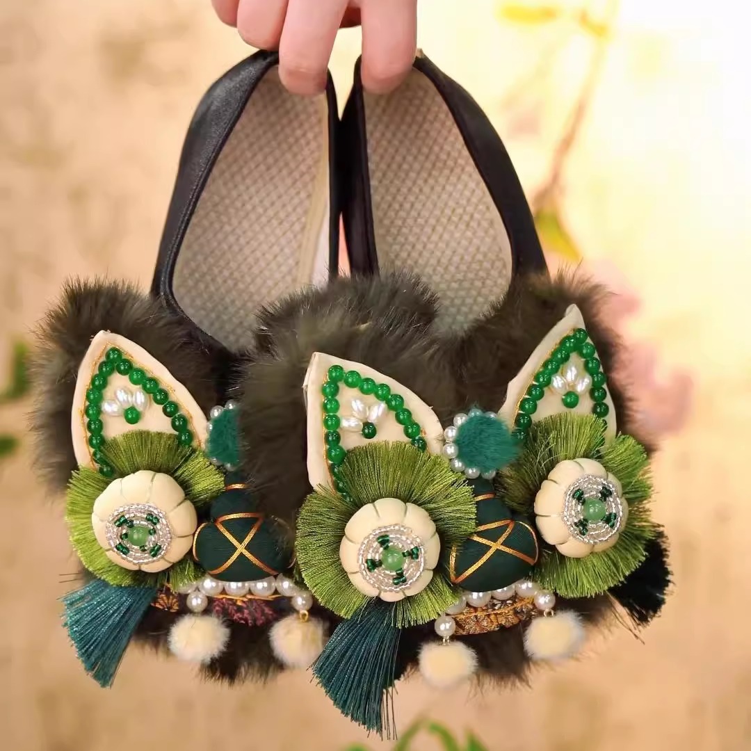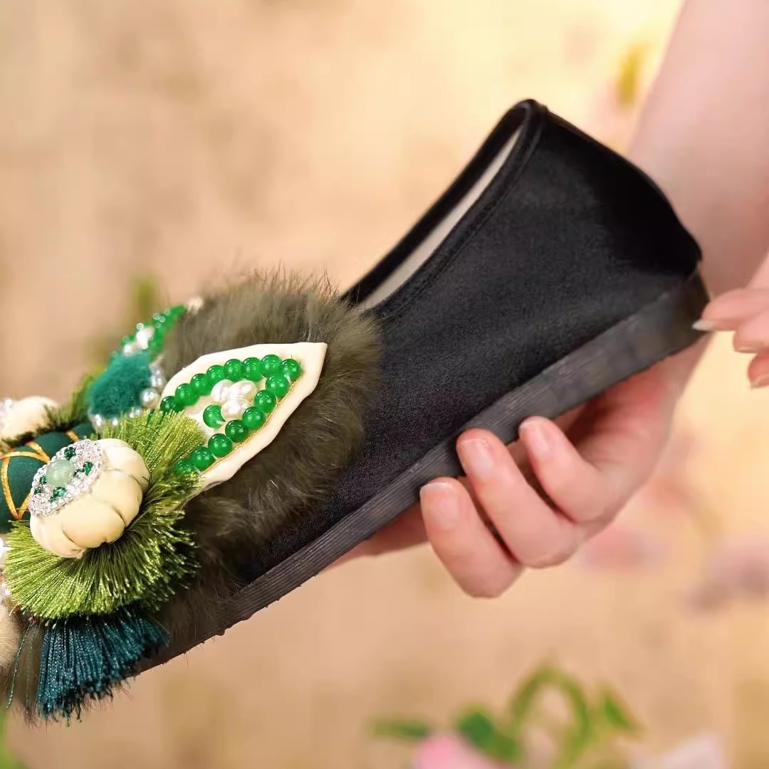 女 原创手工老北京布鞋 非遗国风虎头鞋 成人浅口平底复古绿色绣花鞋