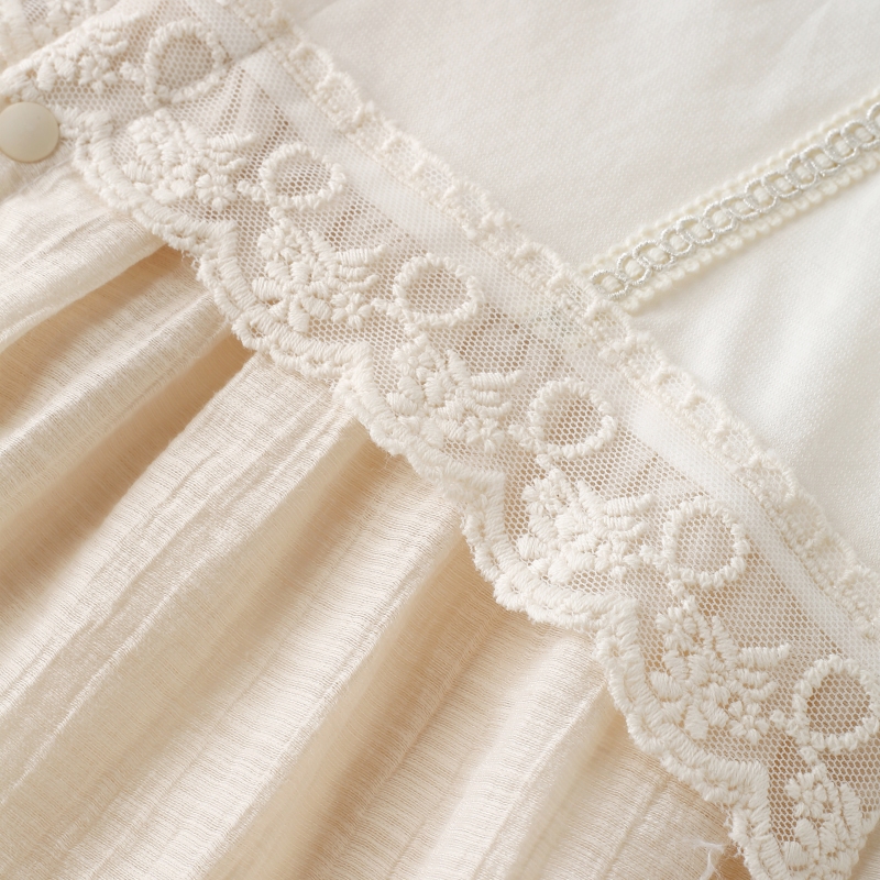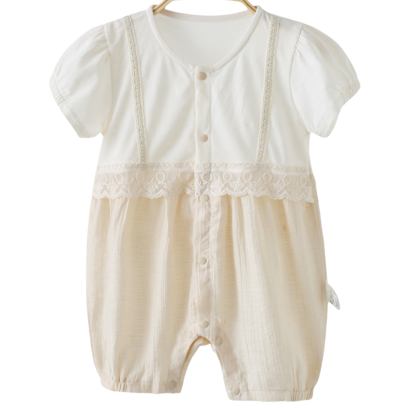 纯棉女宝宝甜美蕾丝花边拼接公主哈衣家居 薄款 婴儿短袖 连体衣夏季