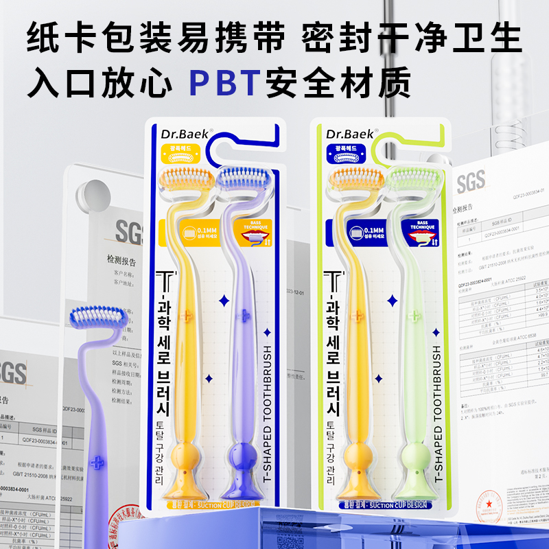 Dr.Baek韩白乐S型竖刷牙刷成人男女软毛牙缝清洁防滑底部吸盘正品