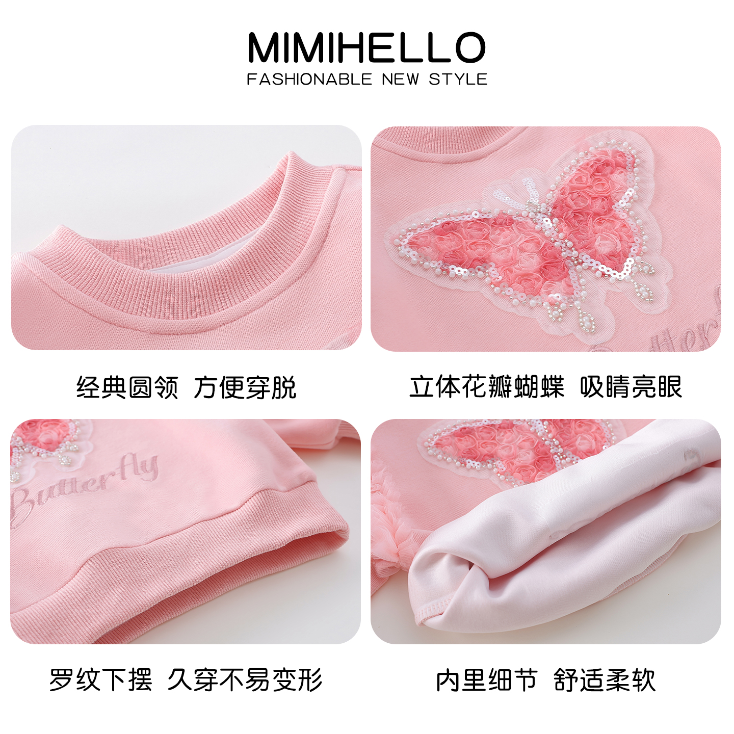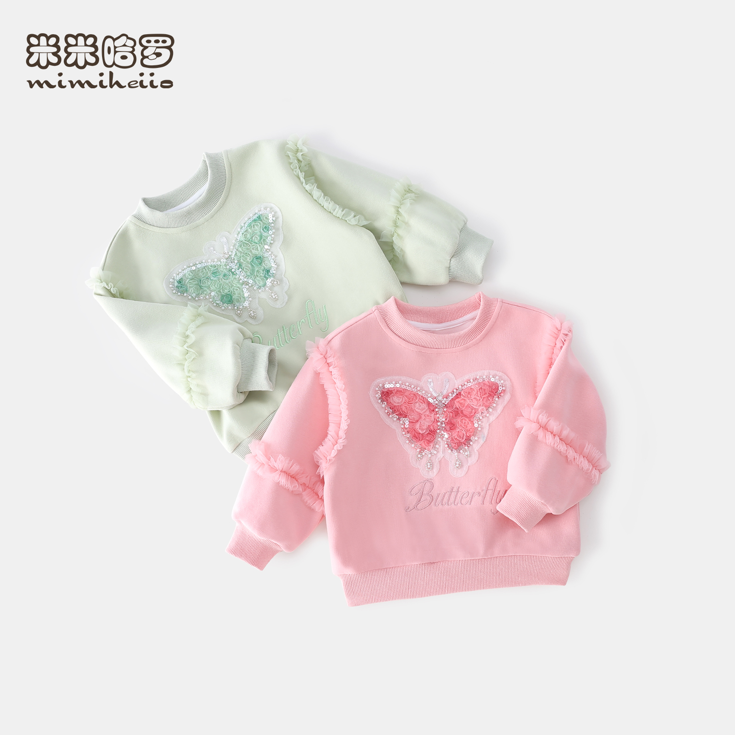蝴蝶洋气小女孩衣服 圆领灯笼袖 女童卫衣春秋儿童韩版 上衣2025新款