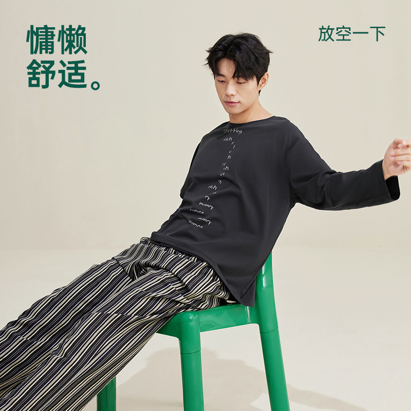 可外穿家居服女套装 贝妍春秋季 子阔腿裤 斜肩上衣慵懒风格 睡衣女款