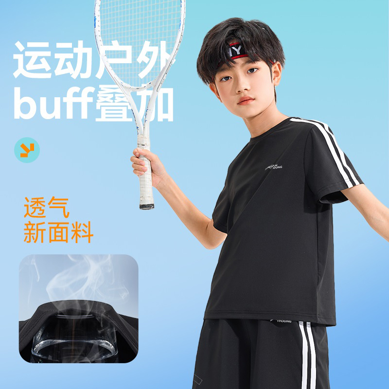男童夏装 短裤 套装 儿童速干运动服大童夏季 t恤 2025新款 贵人鸟童装