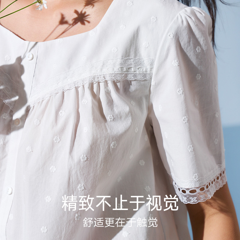 家居服新款 曼妮芬棉质生活纯棉睡衣女蕾丝花边夏季 套装 长裤 短袖