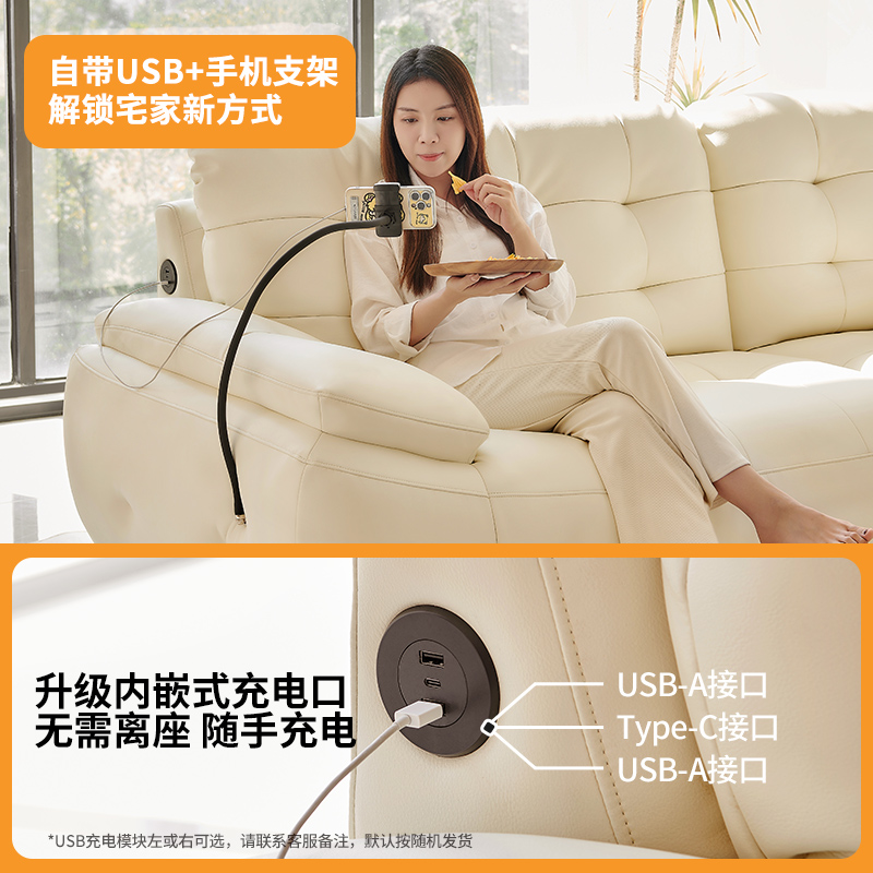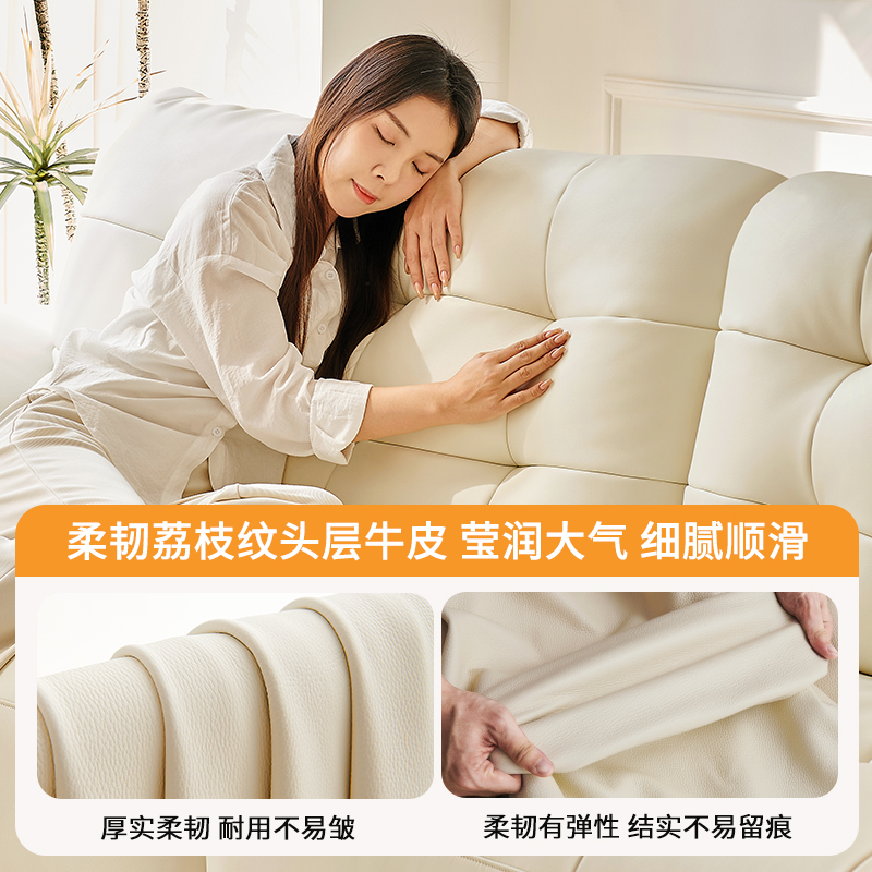 政府补贴冬熊法式 奶油风真皮沙发客厅小户型泡芙棉花糖云朵沙发