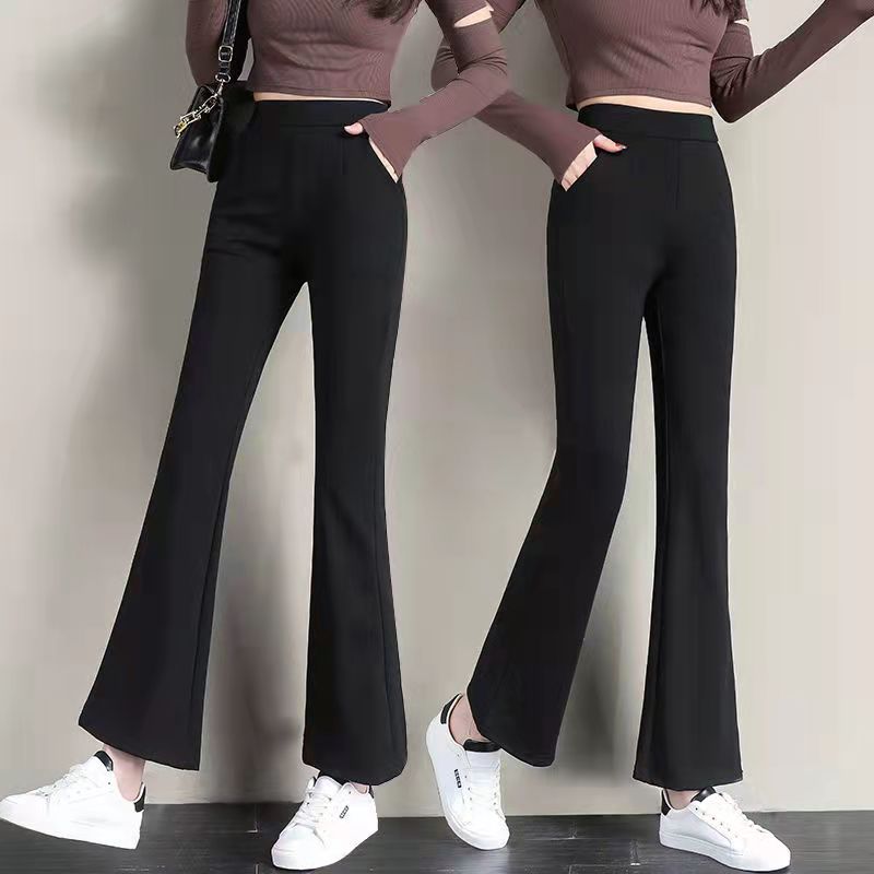 胖mm黑色加绒加厚垂感喇叭裤 大码 子女秋冬高腰显瘦2025新款 微喇裤