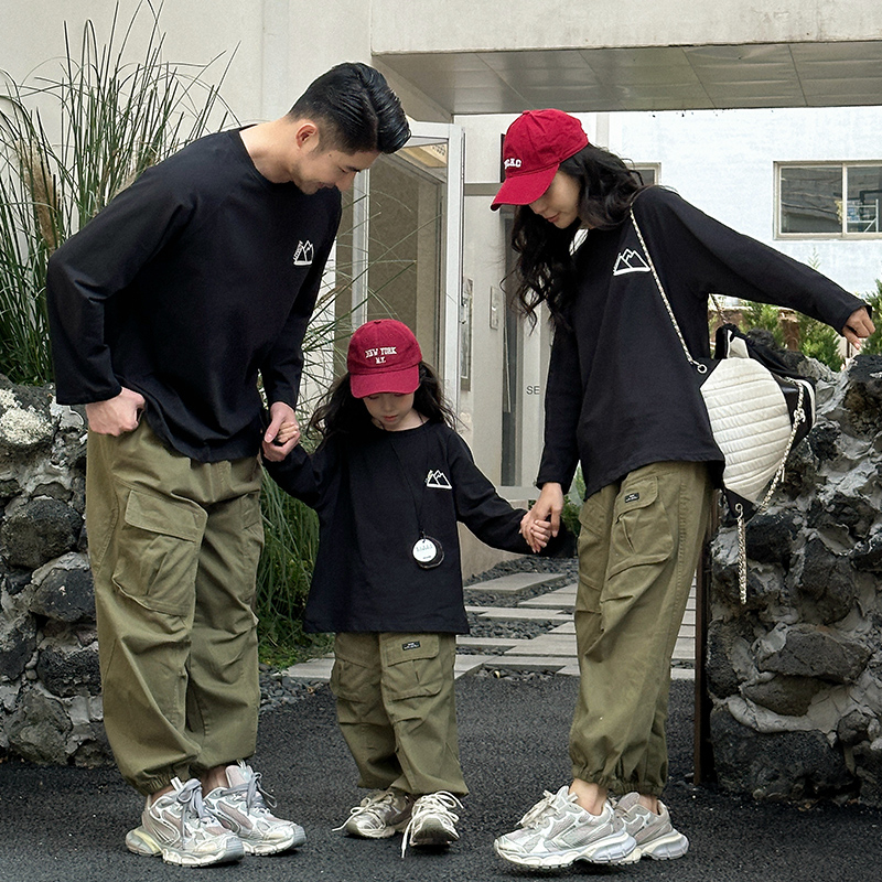 日系纯色亲子装 休闲百搭纯棉T恤一家三四口上衣潮 母女t户外家庭装