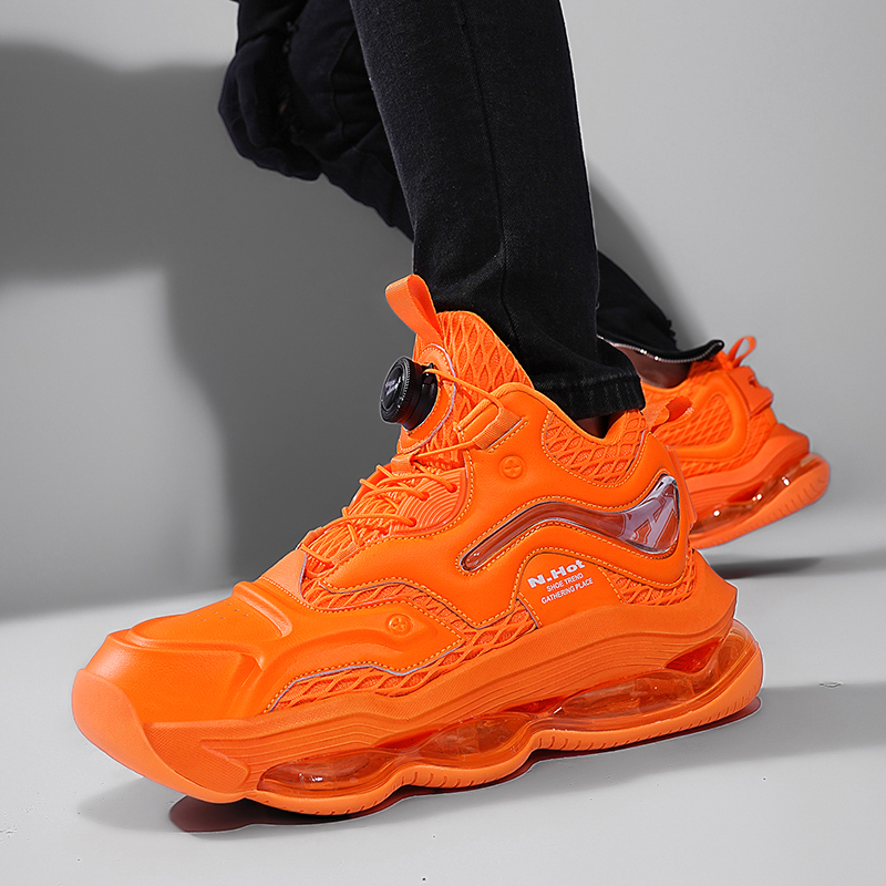 厚底增高减震气垫跑步鞋 NHOT橙色运动鞋 时尚 春秋休闲男鞋 子 男冬季