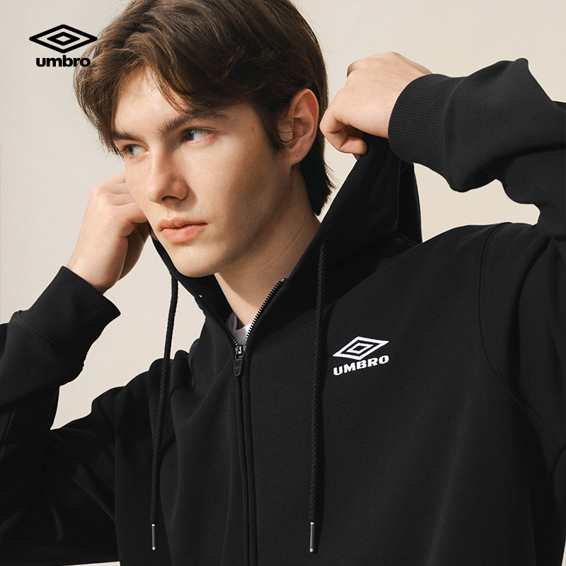 umbro茵宝官方运动连帽外套复古针织夹克简约百搭拉链套装 上衣男