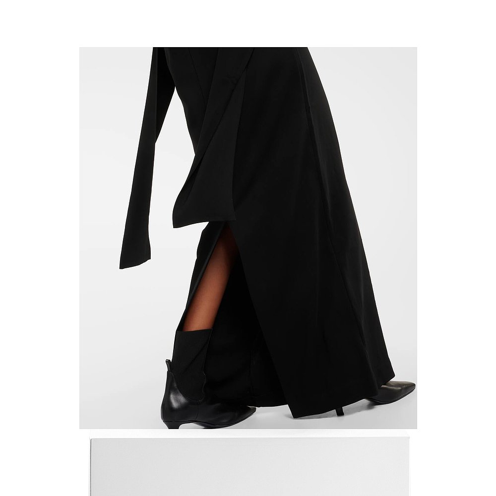 褶皱收腰长裙 微胖御姐气质斜肩荡领连衣裙女25年夏季 XZY 欣争艳