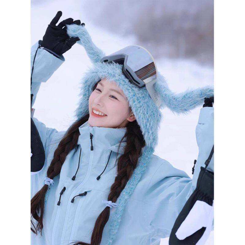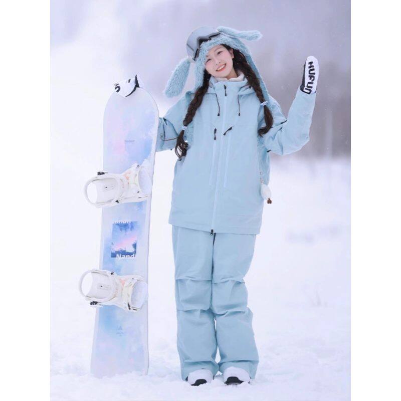 防寒滑雪裤 冬季 情侣加绒冲锋衣棉服 套装 天蓝色单双板滑雪服男女款
