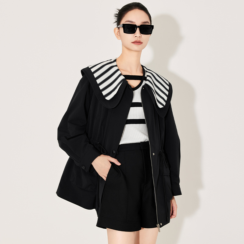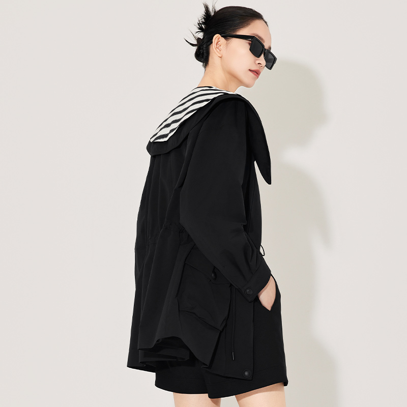 小个子系扣双排扣宽松外套女装 秋季 507331 风衣女2025新款 三福短款