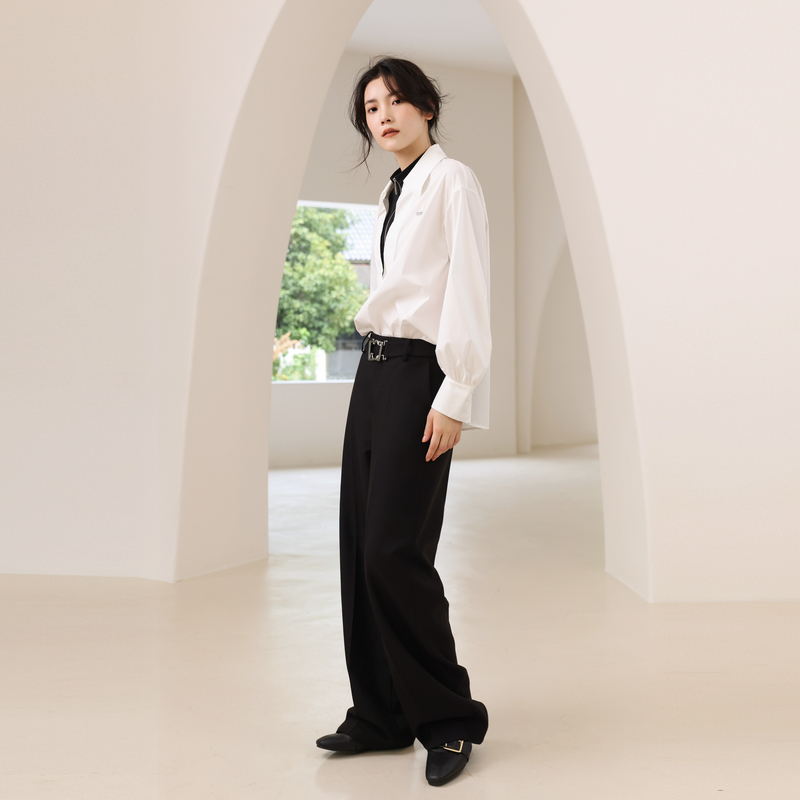 假两件1241S22SJ2YX 通勤风宽松款 婉甸2025星球白长袖 衬衫