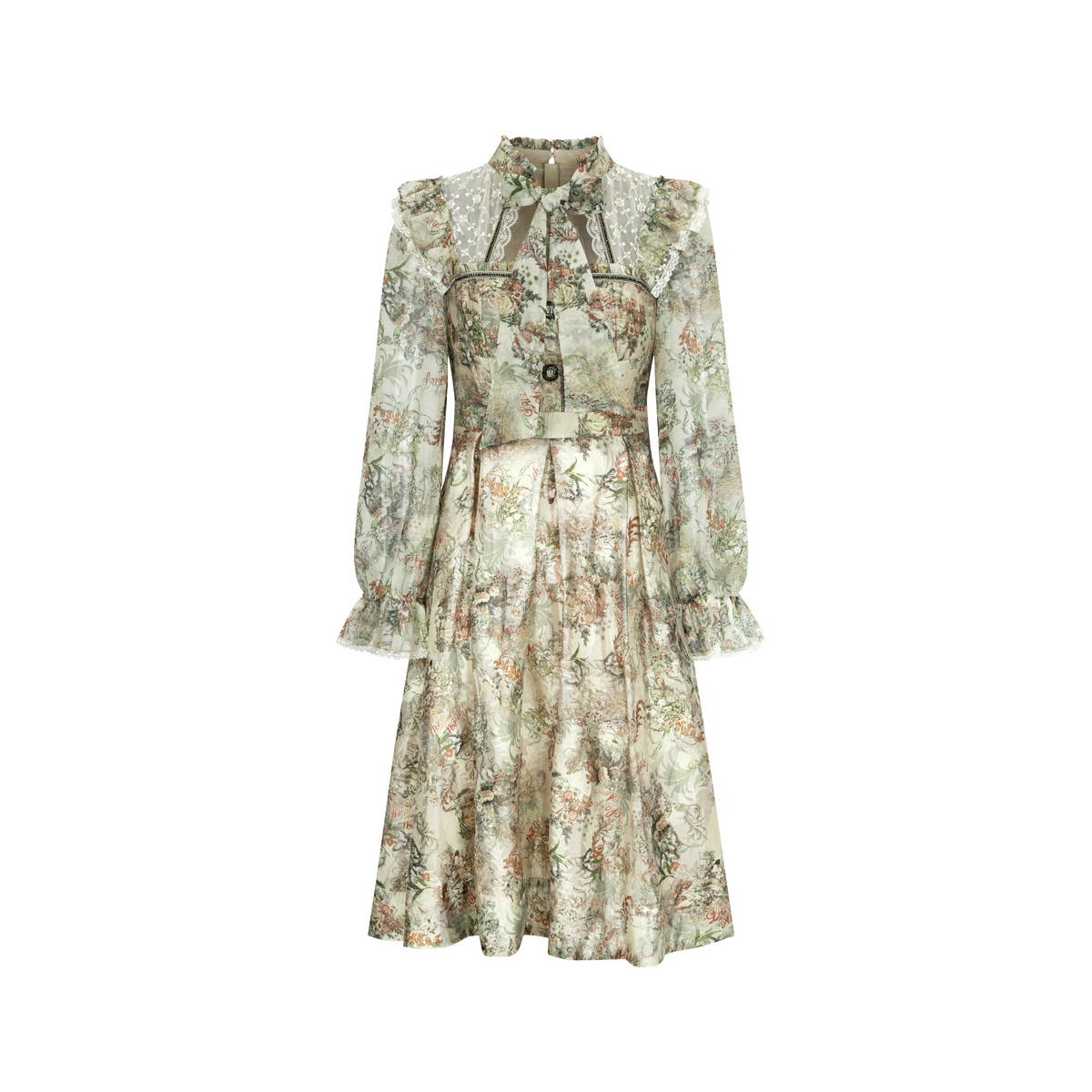 式 KEIKO 显瘦a字衬衫 法式 长裙 费尔岛提花蝴蝶结飘带连衣裙25秋季