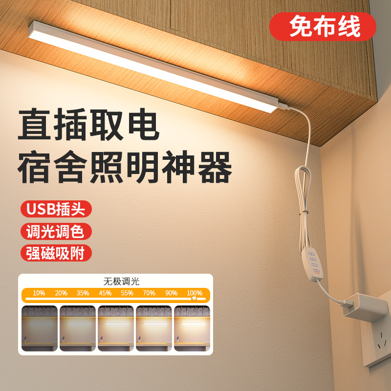 免打孔直插式 led长条灯带开关插头日光灯管USB宿舍灯超亮酷毙寝室