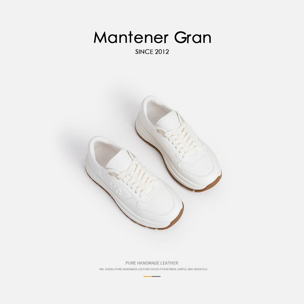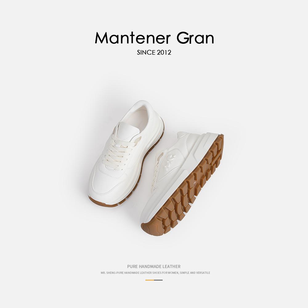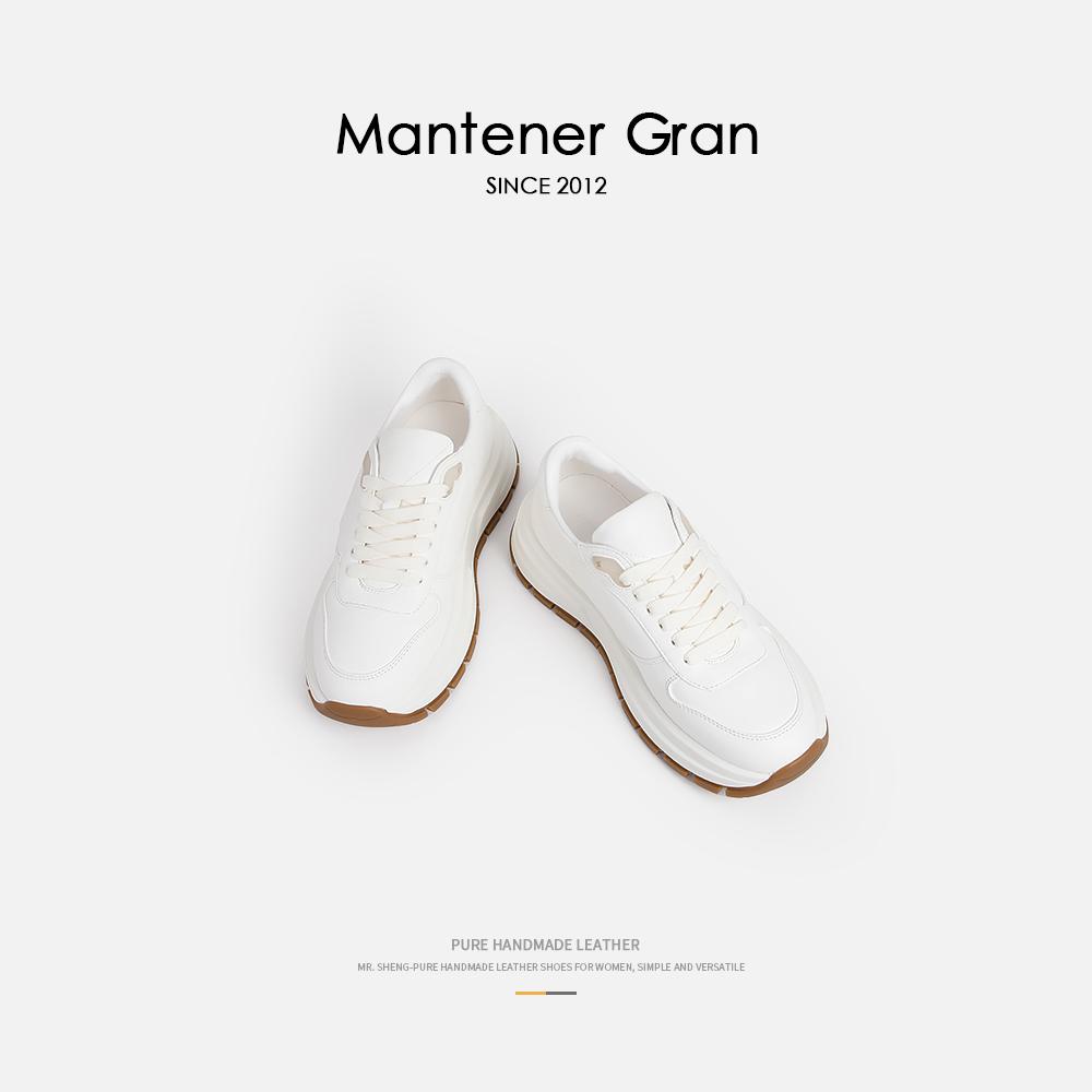 MG女鞋 Mantener 女真皮头层牛皮休闲运动鞋 5CM厚底小白鞋 Gran