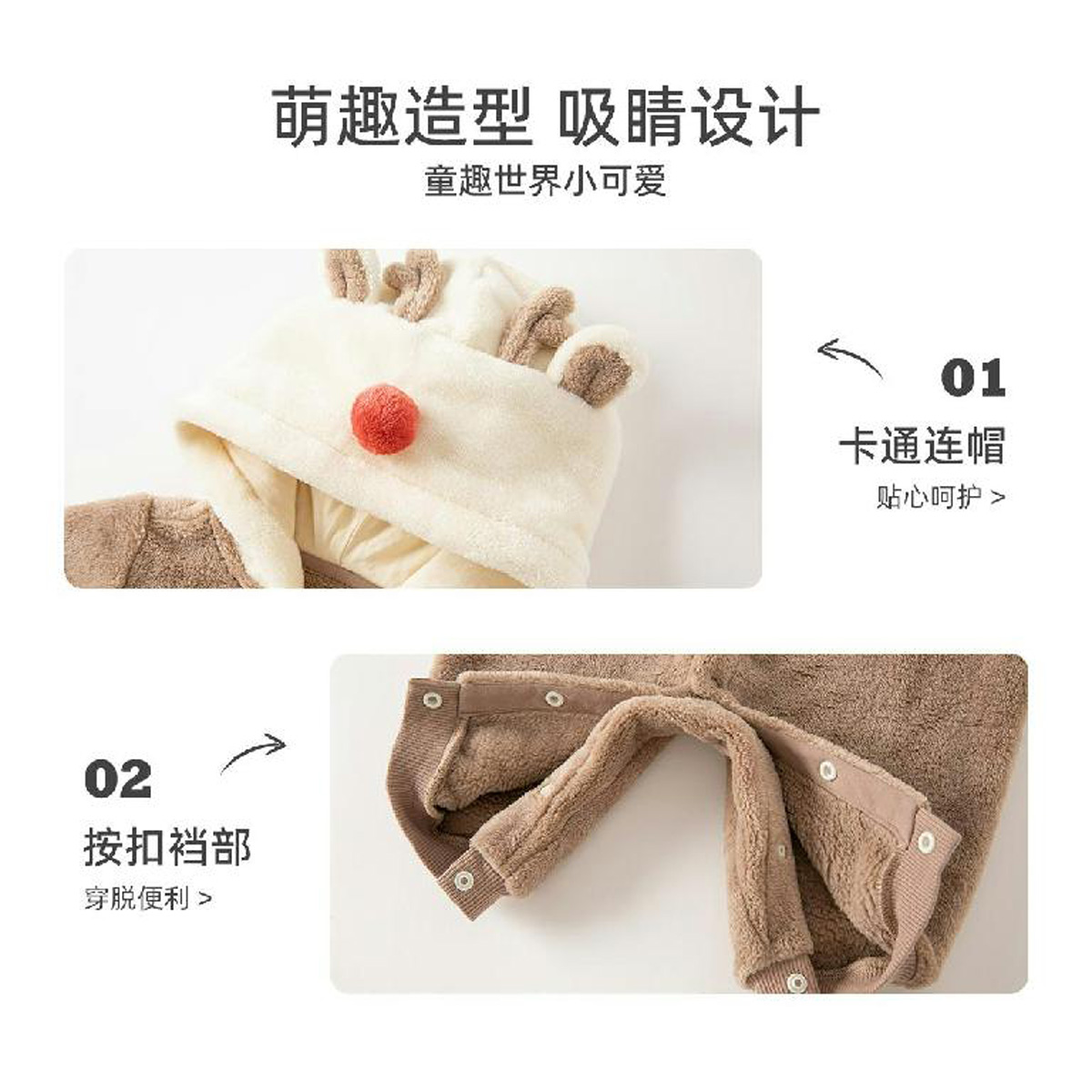 婴童可爱哈衣宝宝爬服 戴维贝拉婴儿法兰绒连体衣冬装 清仓特价