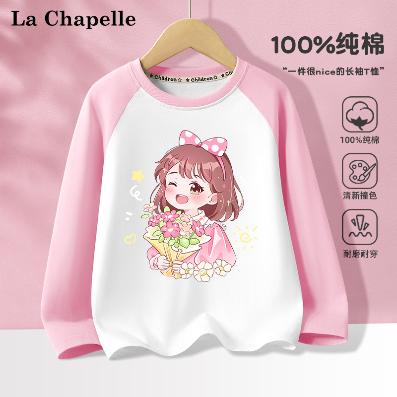 上衣儿童纯棉打底衫 小女孩紫色插肩袖 t恤春秋款 拉夏贝尔女童长袖