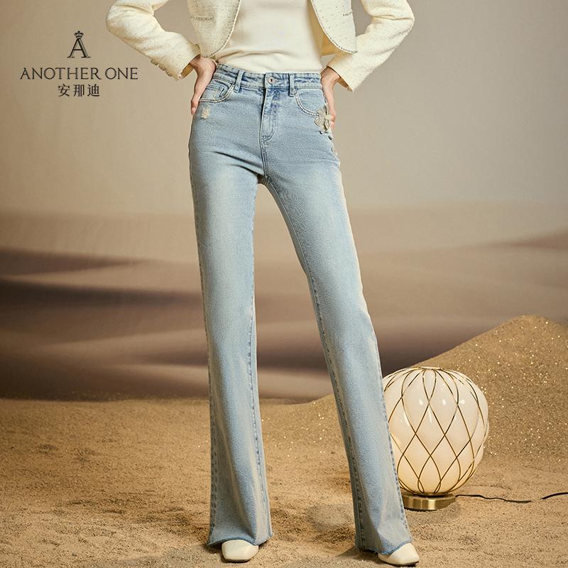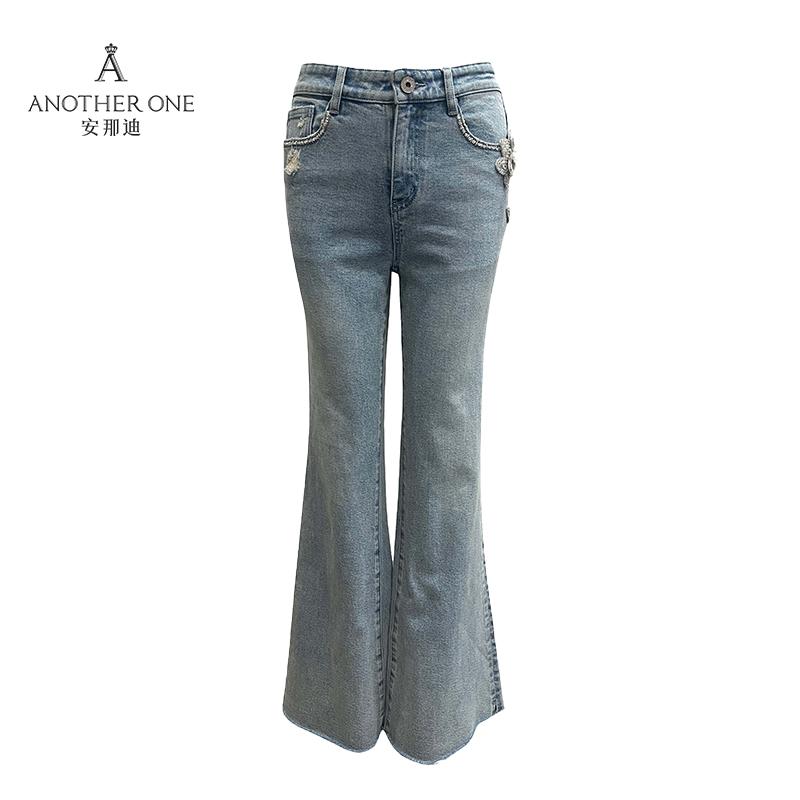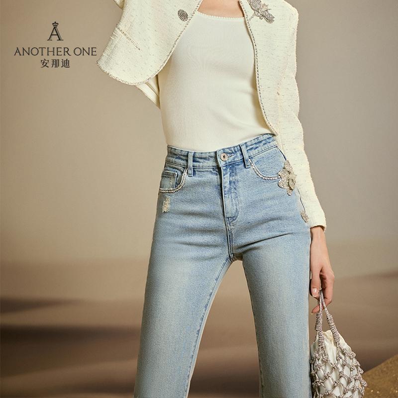 毛边设计修身 ANOTHER 女个性 镶钻牛仔裤 显瘦 ONE安那迪设计感时尚