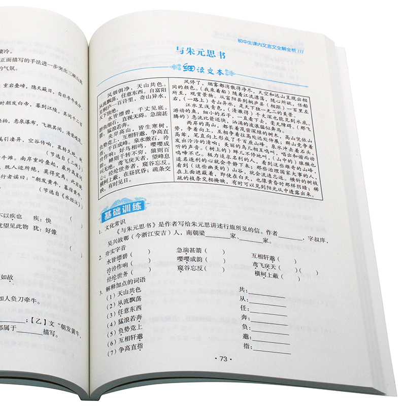 语文高手初中生课内文言文全解全析初中阅读与作文联通训练初一初二初三中考明朝代经典 名作知识点与考题相结合基础训练