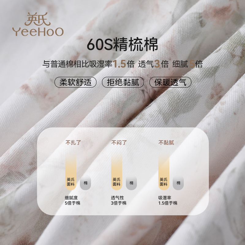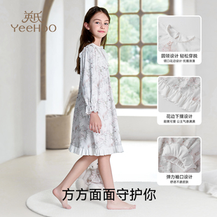 英氏女童睡裙儿童小女孩公主风长袖 YEEHOO 棉春秋季 北欧系列