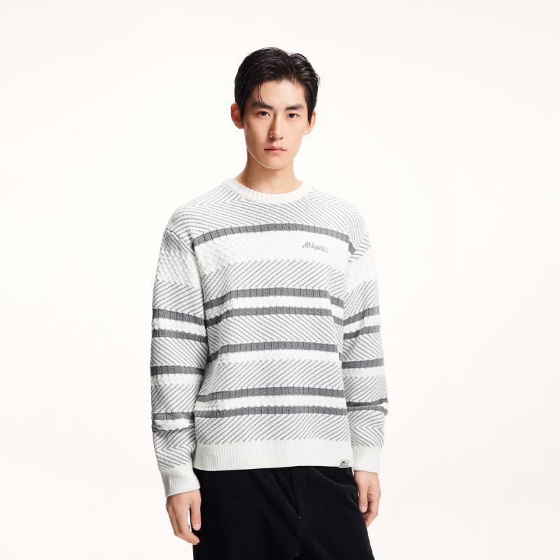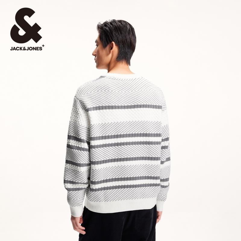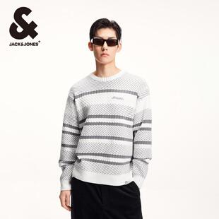 毛衣男装 潮字母刺绣条纹织花百搭针织衫 舒适保暖时尚 杰克琼斯春季