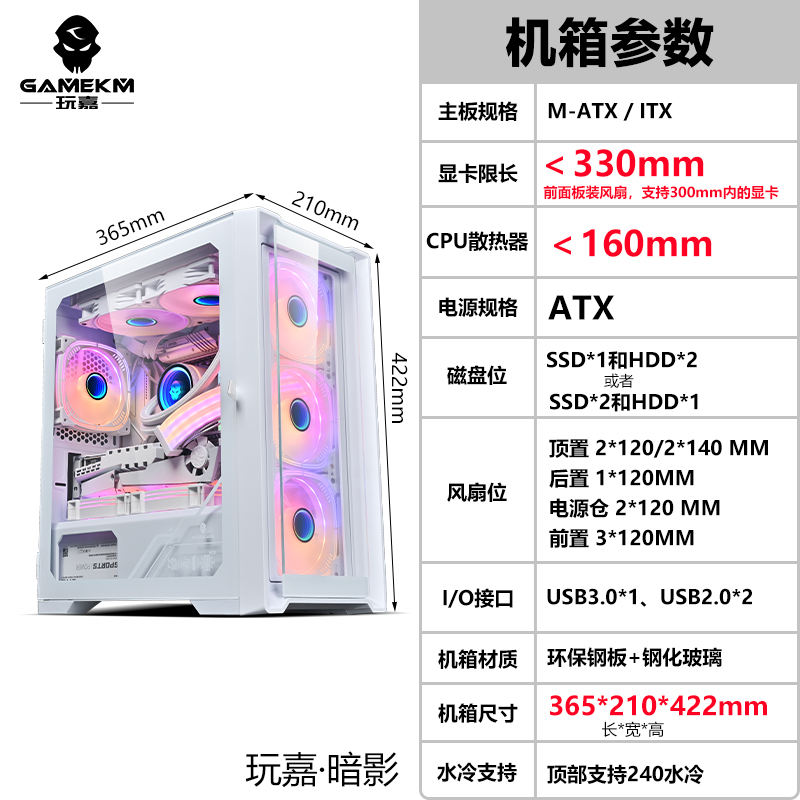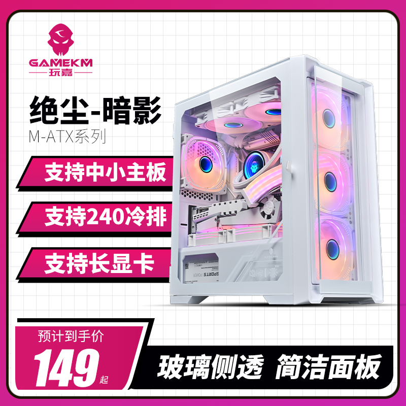 玩嘉 ATX主板240水冷主机箱 绝尘暗影电脑机箱外壳钢化玻璃侧透M
