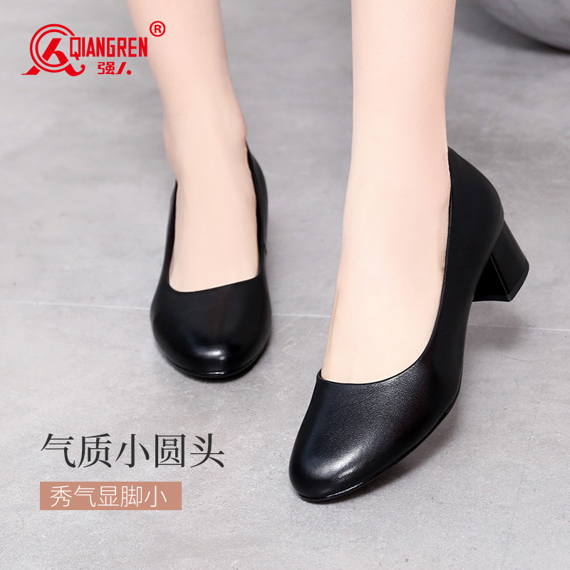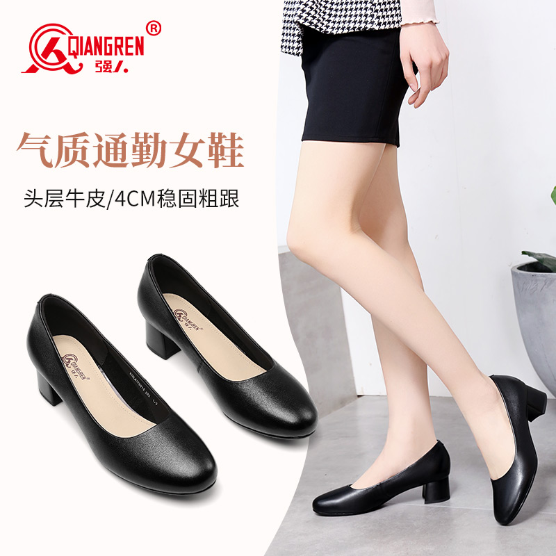 高跟鞋 强人3515女鞋 久站不累脚软底职业工装 女黑色皮鞋 空姐工作鞋