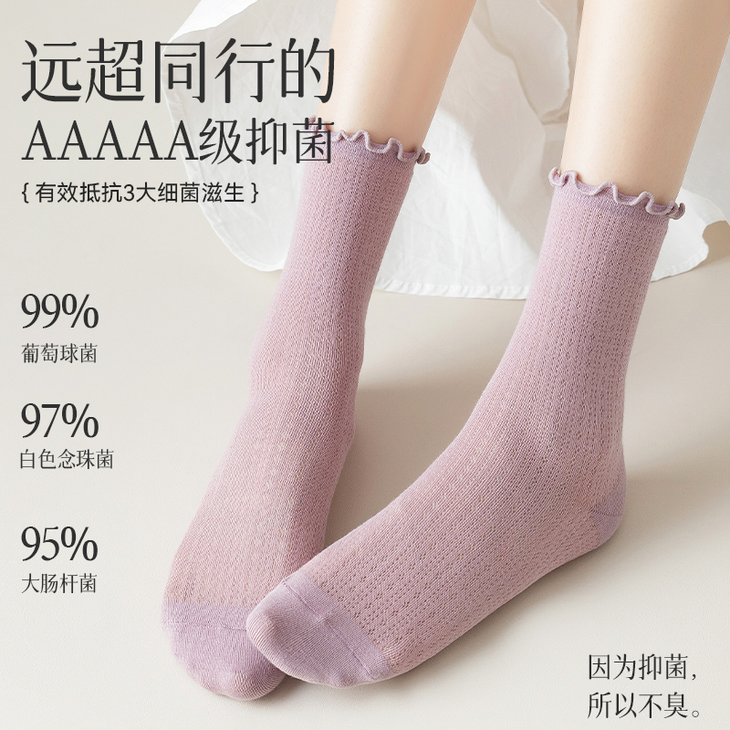 亲相见袜子女纯棉防臭中筒袜秋季 吸汗7a抗菌透气无骨白色女士短袜
