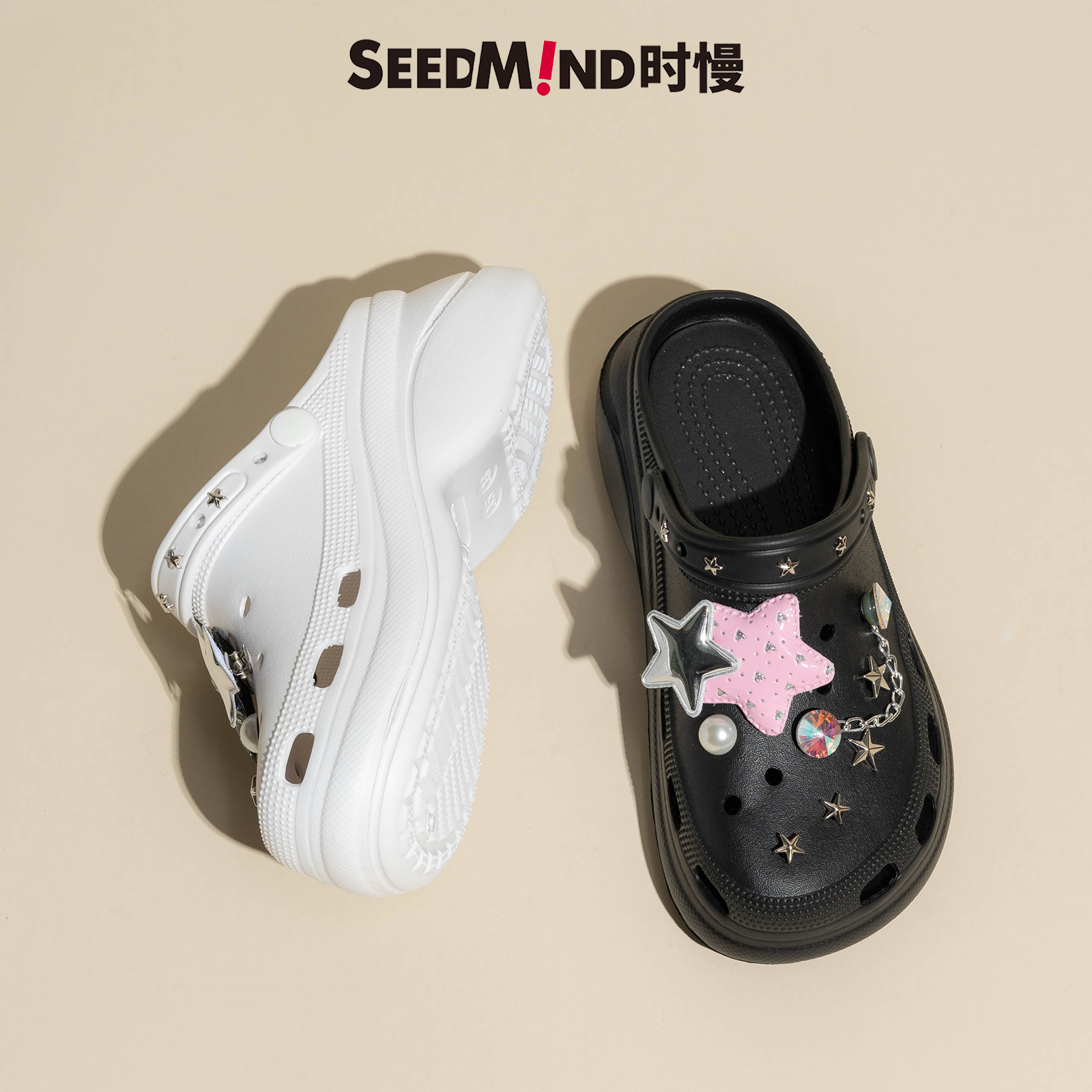 棉拖鞋 时慢加绒洞洞鞋 厚底y2k甜酷软底外穿黑色凉鞋 2023新款 女款