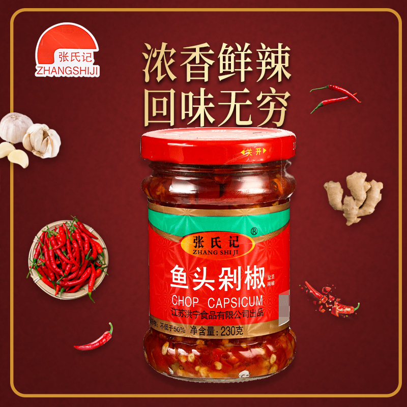 张氏记剁椒鱼头专用酱230g家用下饭菜拌饭拌面调料酱青红剁辣椒酱