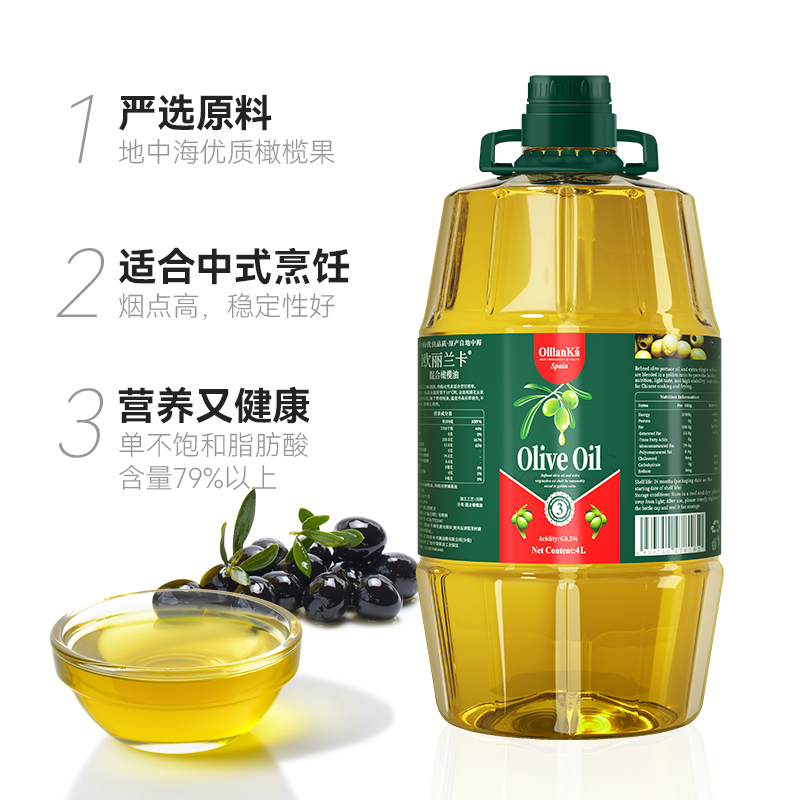 低健身脂食用油 进口含特级初榨橄榄油 欧丽兰卡纯正橄榄油4L 2桶