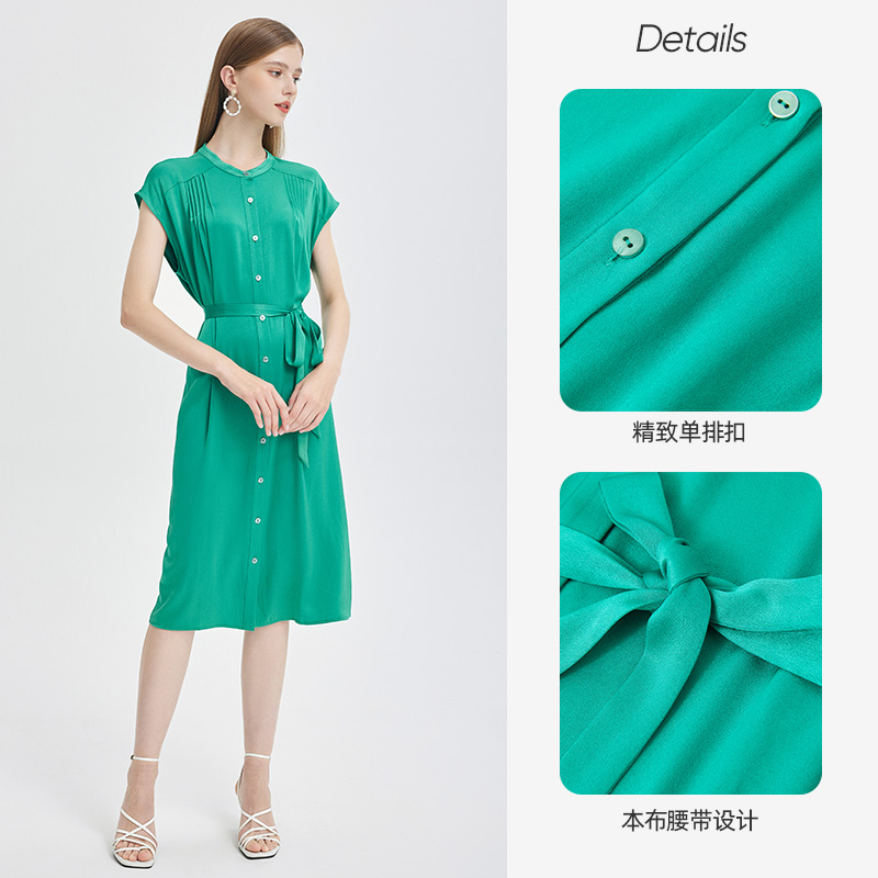衬衫 藏青色长袖 连衣裙气质收腰流行缎面裙子女 新款 DPLAY2025秋季