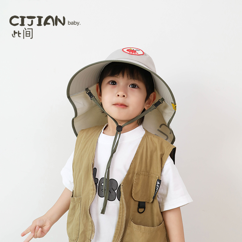 儿童帽子春秋季 太阳帽 宝宝防晒帽男宝女宝遮阳披肩帽男童女童韩版