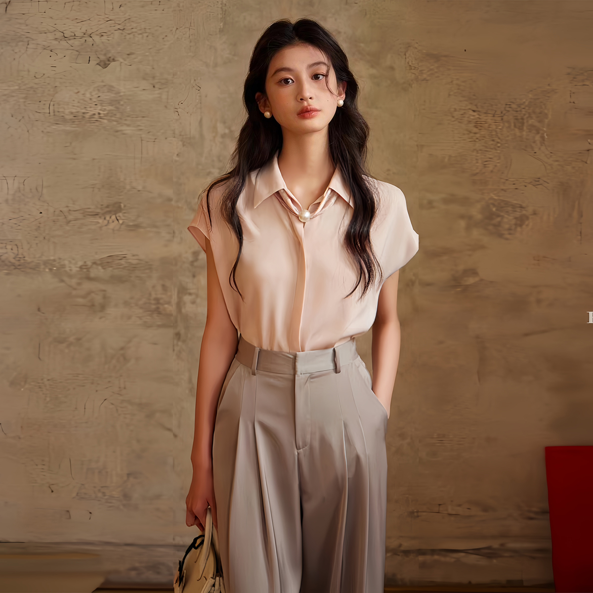 6556 垂感百搭衬衣送丝巾项链 用料好做工棒 简洁仿醋酸V领衬衫