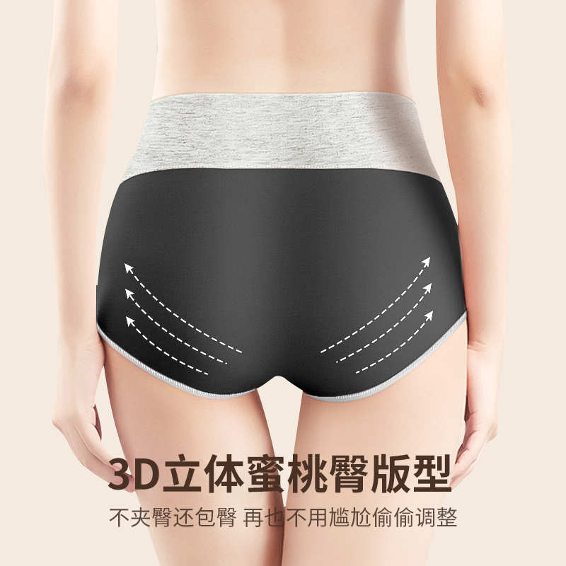 三角内裤 女士抗菌全棉裆塑身提臀大码 纯棉 高弹力高腰收腹裤 5条装